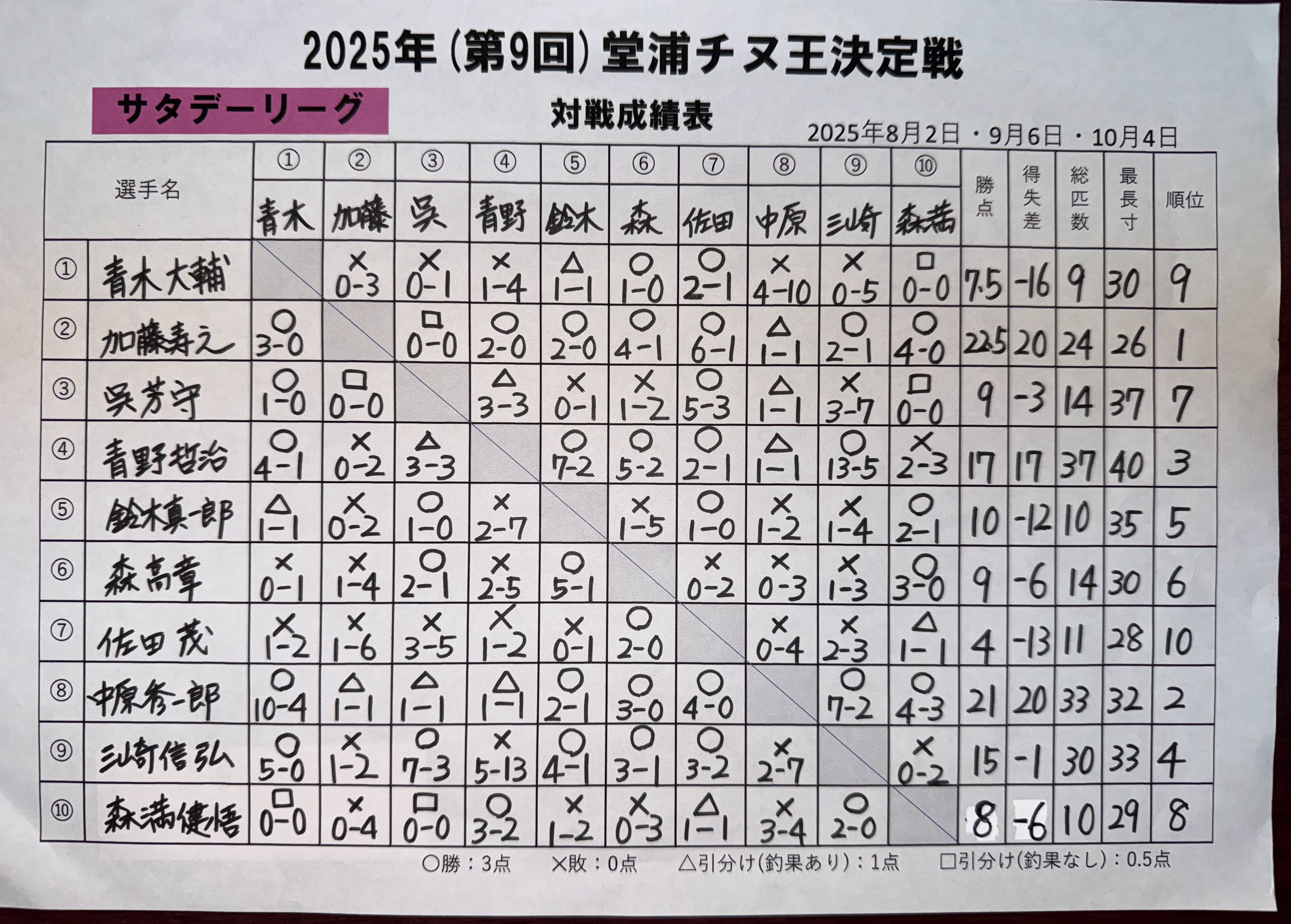 第9回 堂浦チヌ王決定戦 サタデーリーグ対戦表 |